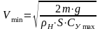 Таким образом, эта скорость, при которой подъёмная сила ещё может уравновесить силу веса самолета на заданной высоте Нi. Практически на Vmin теор летать нельзя, так как любая ошибка в пилотировании или вертикальный порыв ветра, увеличивающий угол атаки, могут привести к сваливанию из-за резкого уменьшения су на закритических углах атаки.