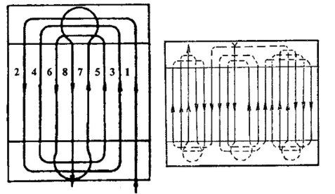 На полях, с длиной гона более 600 м применяют гоновые способы движения с направлением по часовой стрелке (рис.1). Длинная сторона загона на полях естественных трав должна совпадать с длинной стороной луга, а на полях, засеянных травами, – с направлением пахоты.