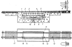 Грузоприемная часть состоит из платформы 3, грузоприемных стоек 1, рычагов 2 и 4 с передаточным числом 1:2, опорных стоек 7, нижней рамы 8, регулируемой серьги 10, преобразователя 9, переходных мостиков 11. Для обеспечения пропуска составов по грузоприёмной платформе во время ремонта подплатформенного механизма в приямке фундамента расположены четыре ручных домкрата 5. Преобразователь крепится к нижней раме и воспринимает нагрузку от грузоприёмных рычагов через регулируемую серьгу. Автоматической работой весов управляли путевые сигнализаторы 12–17 электромеханического типа, обеспечивающие информацией о типе вагона и исключающие массу проходящего локомотива [3, с. 29].