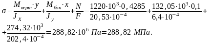 Для определения напряжений в точках сечения, необходимо рассчитать моменты инерции и продольные силы, действующие на сечение.