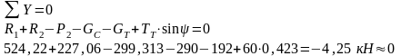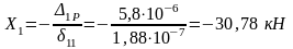 Далее находим неизвестное усилие из уравнения