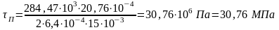 Определим касательные напряжения в полках