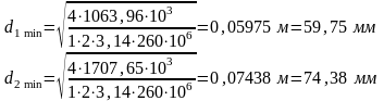 Принимаем диаметры