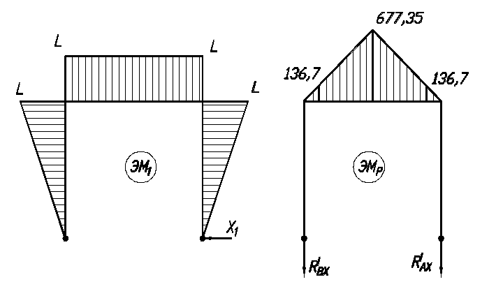 , для отыскания шести неизвестных имеется лишь пять уравнений, т.е система один раз статически неопределима. Учитывая симметрию приложения нагрузки, симметрию рамы и соотношение
