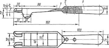 Рис. 5. Рычаг для отжатия пружин толкателей плунжеров: 1 — рычаг, 2 — заклепка, 3 — ручка