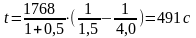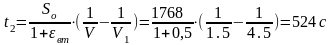 Время падения скорости от Vн = 4,0 м/с до V = 1,5 м/с