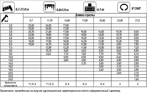 Грузовысотные показатели говорят о том, какой вес будет удерживать кран с увеличением высоты подъема.