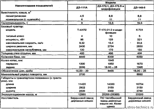 Технічні характеристики самохідних скреперів