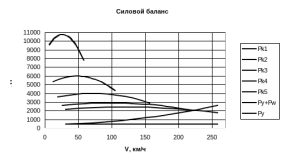 При построении графиков силового баланса для различных передач и скоростей движения автомобиля рассчитывают значение составляющих уравнения силового баланса.