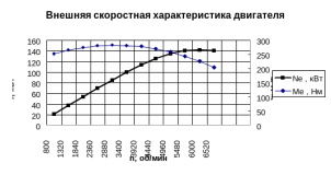 По результатам расчетов строим график внешней скоростной характеристики (рис. 1).
