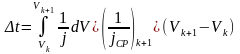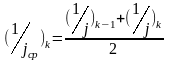 Заменяя точное значение площади под кривой (1/j) в интервале Vк на значение площади прямоугольника со сторонами Vк и (1/jср)к , переходим к приближённому интегрированию: