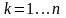 где k=1…m – порядковый номер интервала, m выбирается произвольно (m=n).