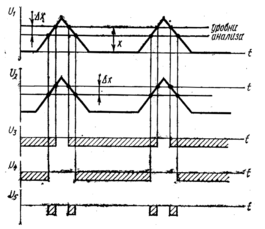 За допомогою амплітудних селекторів і формувачів виробляються прямокутні імпульси тривалість яких рівна часу перебування вхідного сигналу нижче за пороги селекції. Величина постійної складової на виході ВС пропорційна P{X(t)<=x} на виході НС - P{X(t) <=x-x}, на виході ВУ: