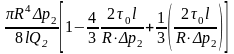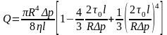 У випадку в’язкопластичної рідини достатньо провести два виміри Q і ∆p, щоб знайти динамічне напруження зсуву τ0 і пластичну в’язкість η. При цьому отримуємо систему рівнянь для визначення двох невідомих η і τ0 за результатами двох вимірювань (Q1, ∆p1) і (Q2, ∆p2)