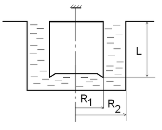 Значення τ0 визначають за граничним заглибленням конуса під дією навантаження F. При цьому припускають, що при зануренні конуса має місце течія шару вздовж бокової поверхні конуса. Ця умова досягається в достатньо пластичних системах, тому напруження τ0 при зсуві, що викликає цю течію, визначається проекцією сили F, яка діє на конус, на твірну l конуса, віднесену до одиниці площі S дотику конуса до середовища.