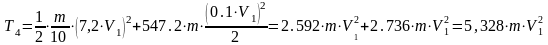 3. Вычислим кинетическую энергию системы в конечном положении как сумму кинетических энергий тел 1, 2, 3, 4.