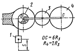 2. Определим угол, на который повернётся водило, когда груз 1 пройдёт расстояние s.