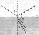 лина световой волны: с/w, где с=3*108 м/с - скорость света в вакууме; w - частота излучения. Абсолютный показатель преломления среды n=c/v где v - скорость света в среде. Т.к. луч плоскополяризован то по закону Брюстера ,