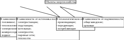 Энергетическое хозяйство предприятия подразделяют на две части: общезаводскую и цеховую. Общезаводскую часть образуют генерирующие, преобразовательные установки и общезаводские сети. К цеховой части энергохозяйства относятся первичные энергоприемники, цеховые преобразовательные установки и внутрицеховые распределительные сети.