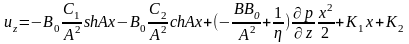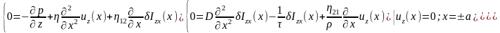 Теперь, если будем считать, что нет градиента давления или он равен нулю, то есть нет причины, которая вызывает движение жидкости, то все константы равны нулю и соответственно uz(x)=0 и δIab(x)=0. Этого и требовалось ожидать.