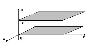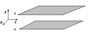 Выберем начало координат между пластинами на расстоянии а от каждой.