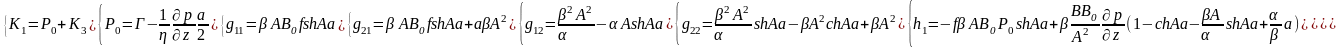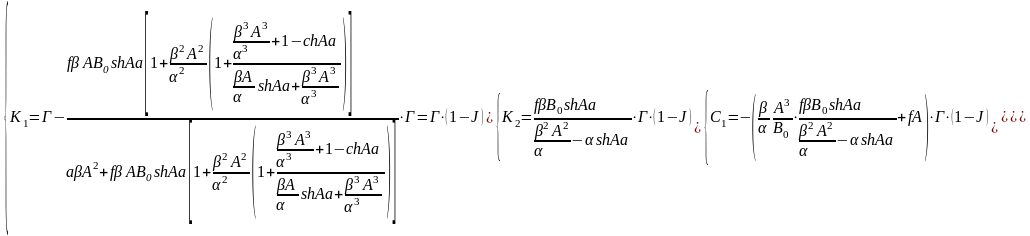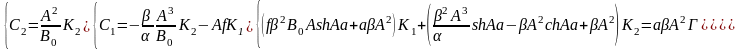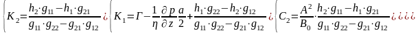 Будем решать систему относительно констант К1 и К2 из-за того, что некоторые слагаемые в этих константах известны заранее в стацинарной задаче без тензора момента инерции. Например, константа К1 предположительно имеет слагаемое равное Г. Поэтому система (24) принимает вид: