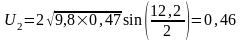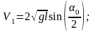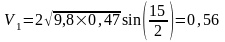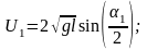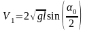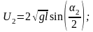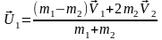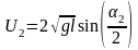Теперь найдём скорости данных шаров до соударения (V1, V2) и их скорости после взаимодействия (U1, U2). При этом (скорость левого шара) V2 = 0 т. к. он покоиться до удара. Значения остальных скоростей находят из следующих формул (через l, и g):