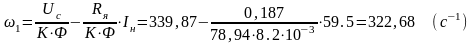 Ф=0,0182 Вб, ωхх=153,13 с-1, ω=145,39 с-1