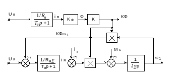 По приведенным уравнениям составим математическую модель двигателя постоянного тока независимого возбуждения ( рис. 2).