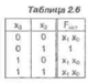 При переносе *о в сигналы настройки (алфавит настройки {О, I, *о}) требуется найти остаточную функцию, аргументами которой является вектор переменных x3x2Xi. Каждая комбинация этих переменных встречается в двух смежных строках таблицы. Просматривая таблицу по смежным парам строк, можно видеть, что остаточная функция соответствует другой таблице (табл. 2.5).