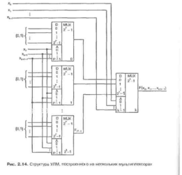 При чисто электронной настройке константами 0 и I схема воспроизводит функцию п аргументов, где п = к + р, причем к – число аргументов, подаваемых на мультиплексор второго яруса, р – число аргументов, от которых зависят остаточные функции, воспроизводимые мультиплексорами 0…2к – 1 первого яруса.