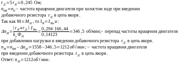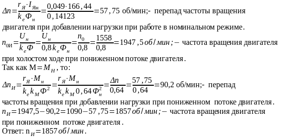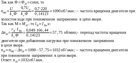 Определить частоту вращения якоря двигателя при номинальном моменте и при следующих параметрах, отличных от номинальных:
