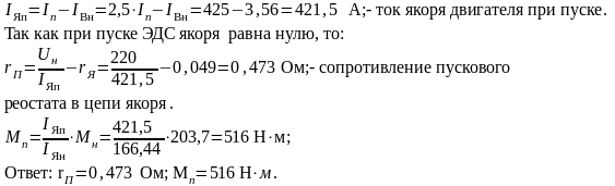 Определить величину сопротивления пускового реостата, необходимого для ограничения пускового тока двигателя до Iп=2,5Iн. Определить при этом пусковой момент двигателя.