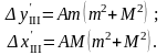 Меридіональна і сагитальна складові поперечної аберації зовнішньомеридіонального променя є функціями координат променя у площині предмета і вхідної зіниці (у, т, М), а також залежать від конструктивних параметрів оптичної системи, положення предметної площини і вхідної зіниці (Sp'). Теорія аберацій встановлює зв'язок між складовими аберацій та і координатами променя у, т та М: