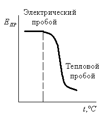 диэлектрика при электрическом пробое не зависит от температуры, но при более высоких температурах диэлектрика переходит в тепловой пробой.