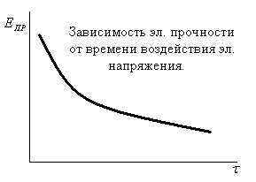 Кривую зависимости от времени воздействия приложенного напряжения называют «кривой жизни диэлектрика», так как по ней можно определить время жизни диэлектрика при заданной напряженности поля.