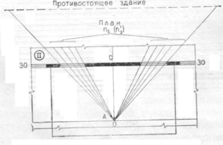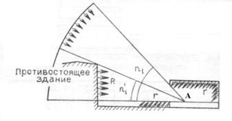 ис Схема для определения коэффициента естественной освещенности с учетом отраженного света от противостоящего здания.