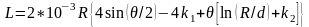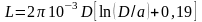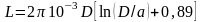 Формулой можно воспользоваться также для расчета индуктивности кругового витка, принимая В = 2,451.