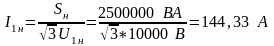 а) номинальный ток первичной обмотки трансформатора: