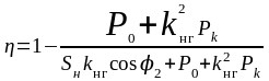 По результатам расчетов строят зависимость η = f ( kнг ) (рис.4). Максимальное значение коэффициента полезного действия имеет место при условии k2нгPk = P0 . Отсюда коэффициент нагрузки, соответствующий максимальному КПД,