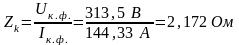 в) полное сопротивление короткого замыкания