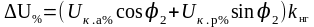 При практических расчетах изменение вторичного напряжения трансформатора в процентах от номинального определяют по формуле