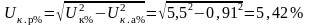 Uк. а%=Uк%cosφк= Uк%rк/zк=5,5*0,36/2,172=0,91%;