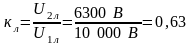к) линейный коэффициент трансформации трансформатора