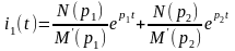 где N (р1) и N (р2) - соответственно значения полиномов числителя при корнях р1 и р2 М' (р1) и М' (р2) - значения производной от полинома знаменателя соответственно при корнях р1 и р2. Полиномы числителя при корнях р1 и р2: