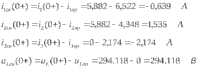 3. Полные значения токов и напряжений в первый момент после коммутации: