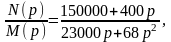 N (p) =150000 + 400р – полином числителя, где