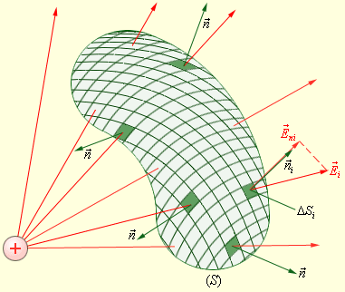Рассмотрим теперь некоторую произвольную замкнутую поверхность S. Если разбить эту поверхность на малые площадки ΔSi, определить элементарные потоки ΔΦi поля