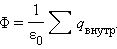 точечных зарядов. Поток Φ системы зарядов через произвольную замкнутую поверхность S будет складываться из потоков Φi электрических полей отдельных зарядов. Если заряд qi оказался внутри поверхности S, то он дает вклад в поток, равный