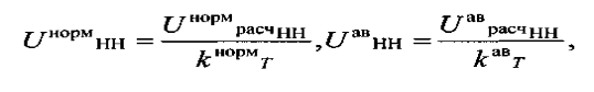 Действительные напряжения на шинах НН при нормальном и аварийном режимах с относительным числом витков wВНр=1 будут: